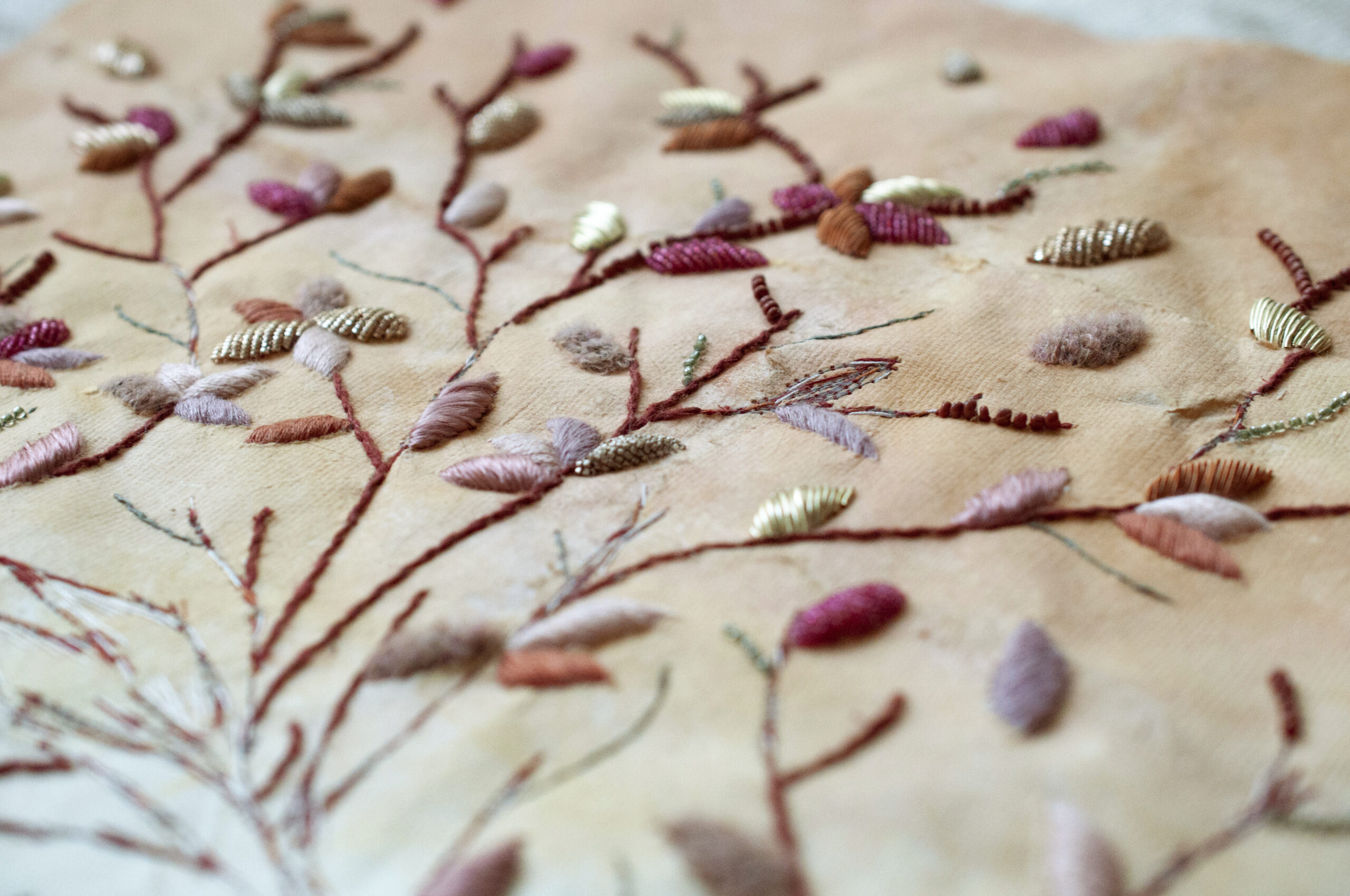 Vous utilisez des techniques comme le crochet de Lunéville, le stumpwork, la cannetille… Pouvez-vous expliquer ces gestes à quelqu’un qui ne connaît rien à la broderie d’art ?